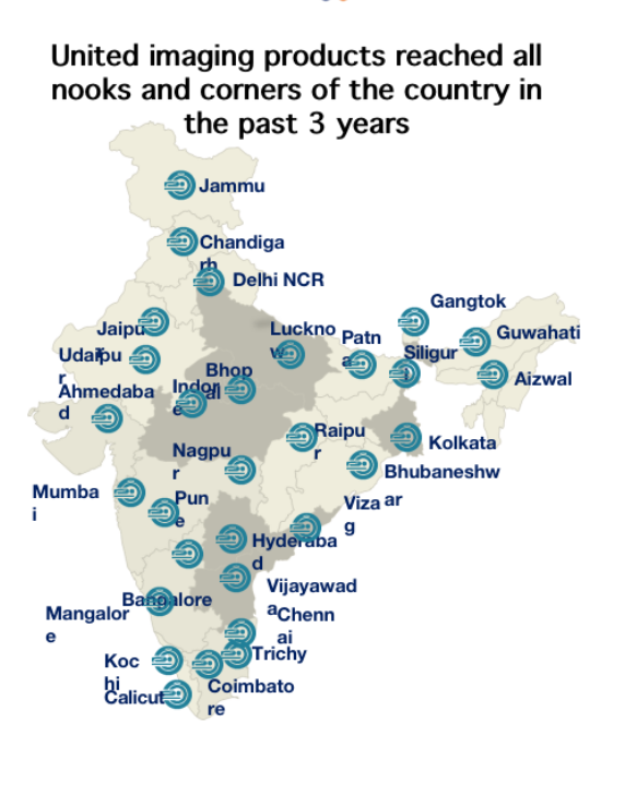 从南到北,联影医疗设备的客户遍布整个印度,所有区域均匀发展,势头良好